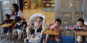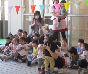 応援席には、0歳児さんもお座りして声援を送りました📢