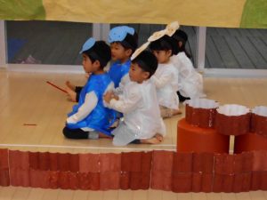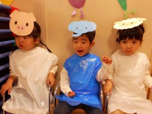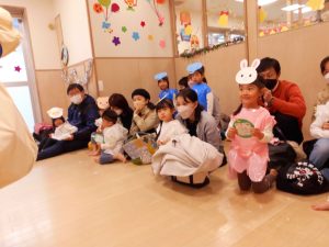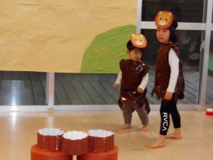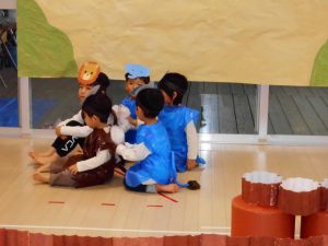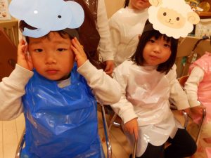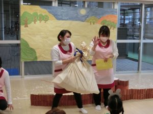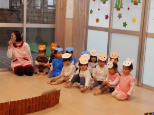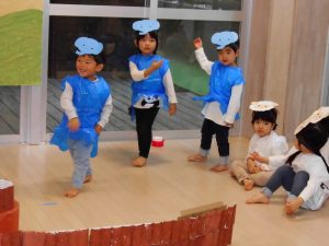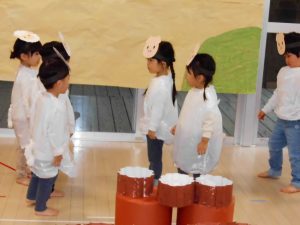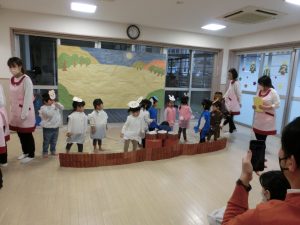 今回は、2歳児以上で「もりのおふろ」の劇をしました!