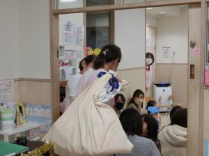 と先生が白い大きな袋を持ってきてくれました!🎅