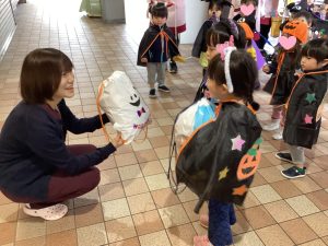 テトテひらおです✨ 10月31日(金)はハロウィンパーティーでした🎃🎃 朝から「トリック・オア・トリート~」と元気な声が聞こえていました💕 かわいい衣装を着て、駅近くをパレード!! 歩いている
