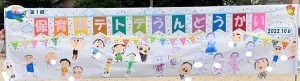 みんなで顔を描いて貼った横断幕!