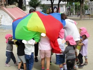 秋晴れの中、テトテひらお・やくいん合同ミニうんどうかいを行いました❗