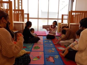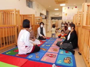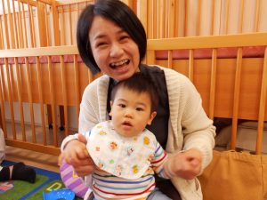 今回は、ママと一緒にわらべうた遊びをして遊びました ♪
