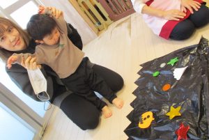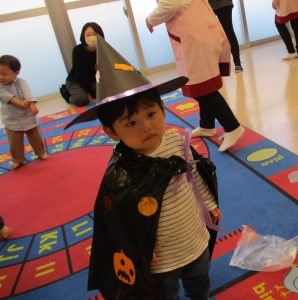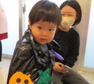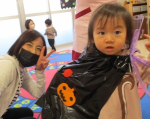 その後、ハロウィンで着るマントを親子で協力して製作しました🎃