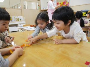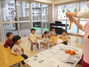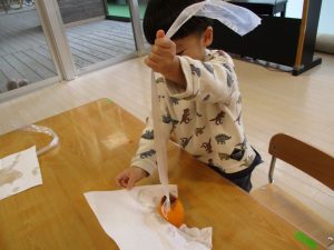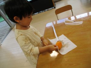それから、保育士が目の前で皮をむいて見せました!