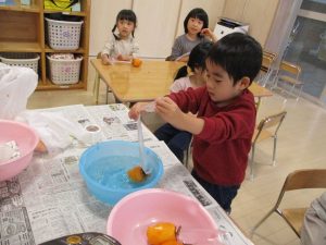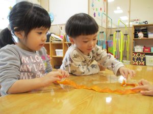 一つひとつに紐を付け、今度は子どもたちの仕事の番です!