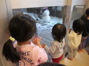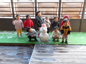 先生に小さな雪だるまを作ってもらって、手のひらに乗せたり ♪