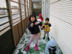 たくさん雪を触ったり、雪玉を作ったりして楽しんでいました!